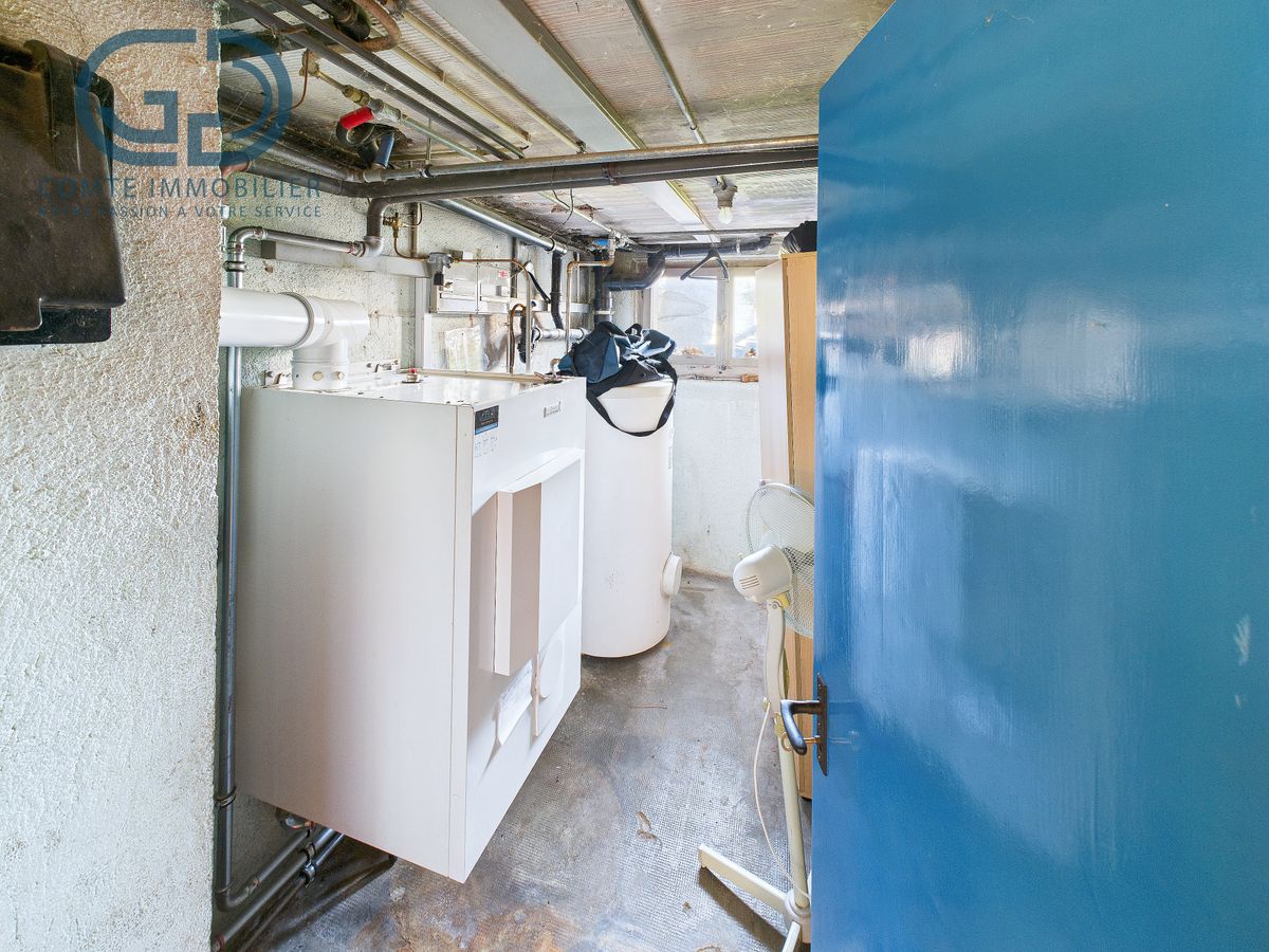 Située dans un quartier résidentiel calme et ensoleillé de Courroux, cette maison individuelle construite en 1960 et rénovée en 1990 puis en 2013 offre une surface habitable de 186 m² et une surface utile totale de 271 m², est bâtie sur une belle parcelle de 950 m². Elle se distingue par sa configuration composée de deux appartements indépendants, idéale pour un projet familial, un investisseur ou un propriétaire souhaitant combiner logement et rendement locatif.Distribution intérieureSous-solLe sous-sol comprend un couloir de distribution, une cave, un local technique, une chambre supplémentaire, un local citerne ainsi que deux garages. Ces espaces offrent de belles capacités de rangement et de stockage, ainsi qu'un accès pratique aux installations techniques et à l'extérieur.Rez-de-chausséeLe premier appartement, situé au rez-de-chaussée, propose une cuisine fonctionnelle, un séjour lumineux avec cheminée française, trois chambres spacieuses, une salle de bains et un couloir de distribution. Le salon mène à une terrasse extérieure orientée de manière à profiter d'un excellent ensoleillement, parfaite pour les repas d'été ou les moments de détente.1er étageLe second appartement se trouve au 1er étage et dispose d'un hall de distribution, d'une cuisine, d'un séjour accueillant, d'une chambre et d'une salle de bains. Cet étage offre une belle luminosité et une vue dégagée sur le quartier.ComblesLes combles, non habitables, offrent un volume supplémentaire utilisable pour le stockage ou pour un futur aménagement selon les besoins du propriétaire.Extérieurs et aménagementsLa propriété repose sur une parcelle de 950 m², soigneusement entretenue et offrant un bel espace extérieur. Un réduit d'environ 32 m³ complète les aménagements extérieurs, idéal pour le rangement du matériel de jardin. Les deux garages et plusieurs places de stationnement extérieures assurent une grande praticité pour les habitants et les visiteurs.Confort et potentielLe chauffage est assuré par un système au mazout, distribué par vannes thermostatiques, garantissant un confort homogène dans toute la maison. Le salon érigé lors de l'extension en 1990, possède une distribution de chauffage au sol.